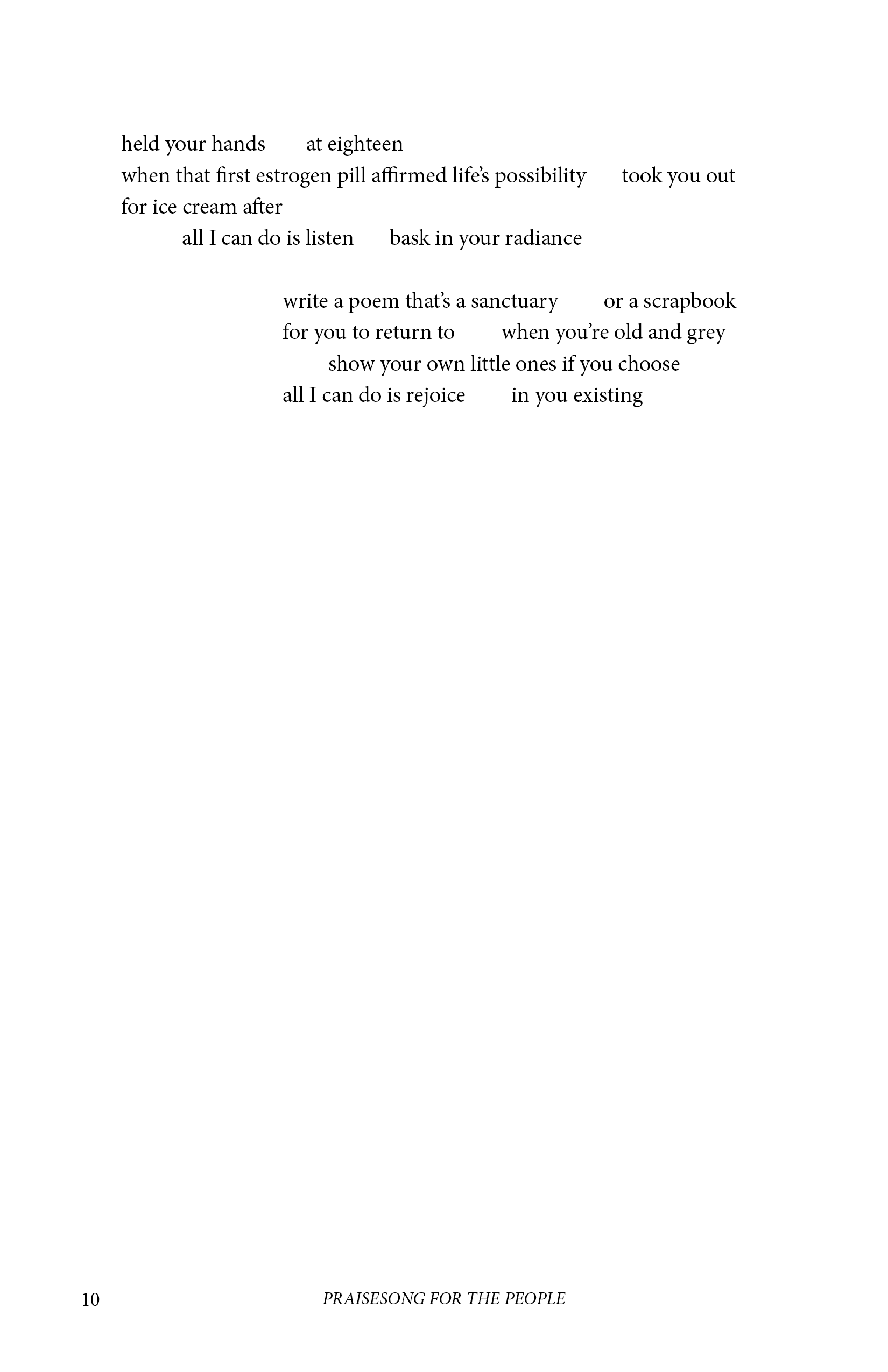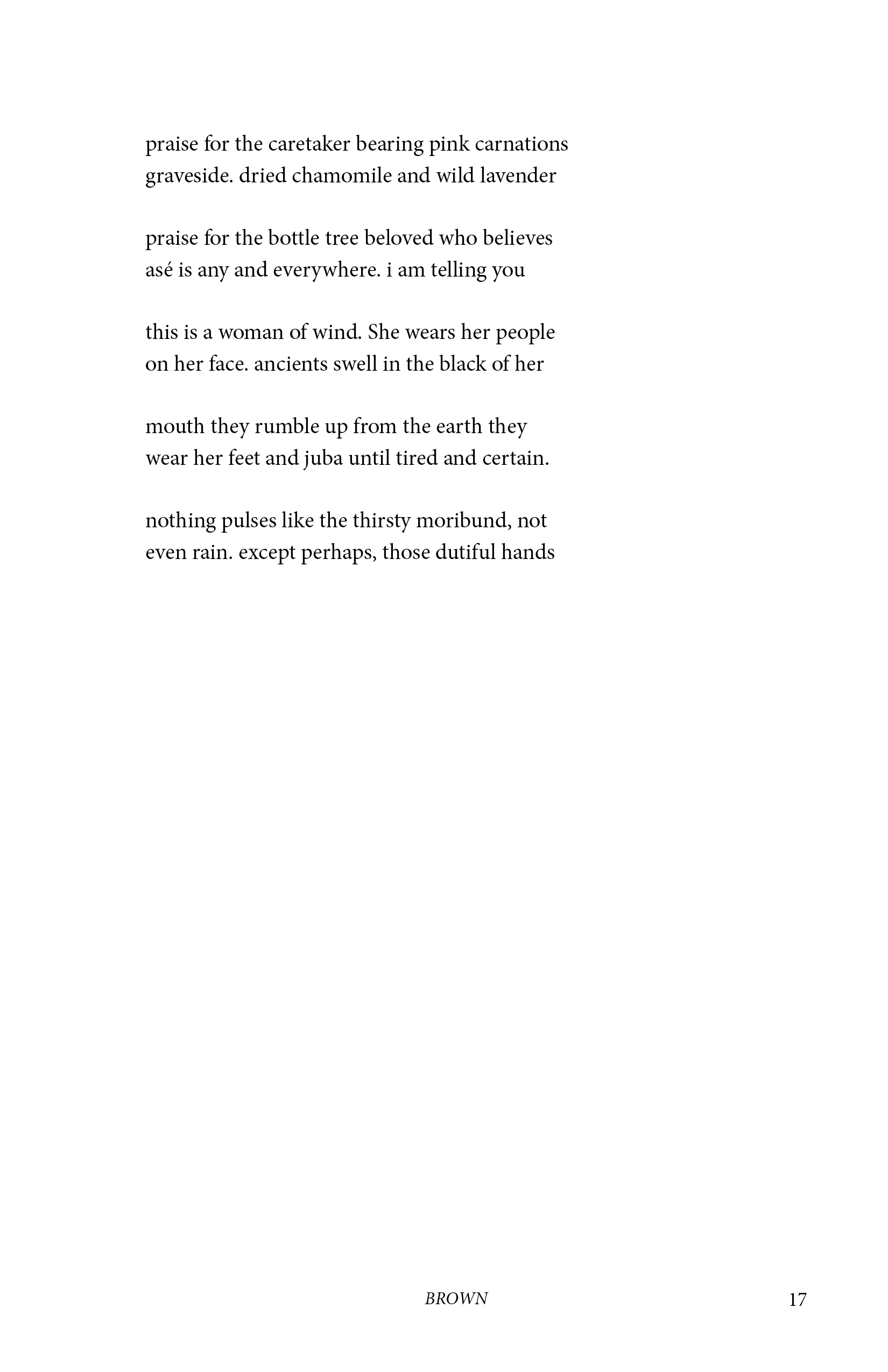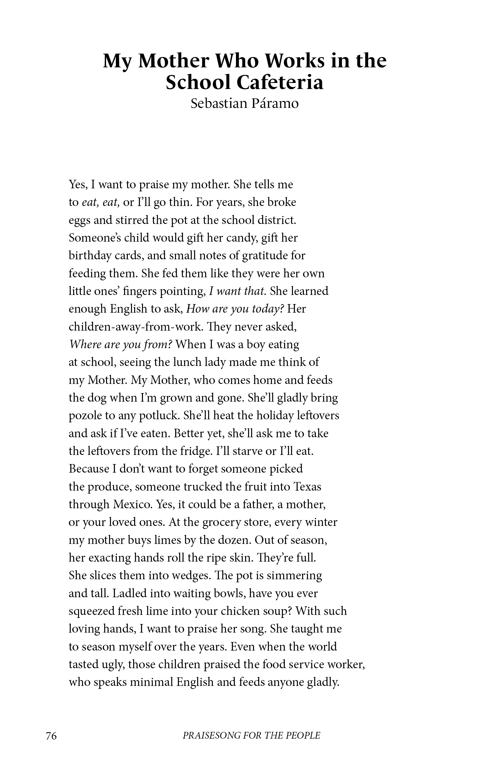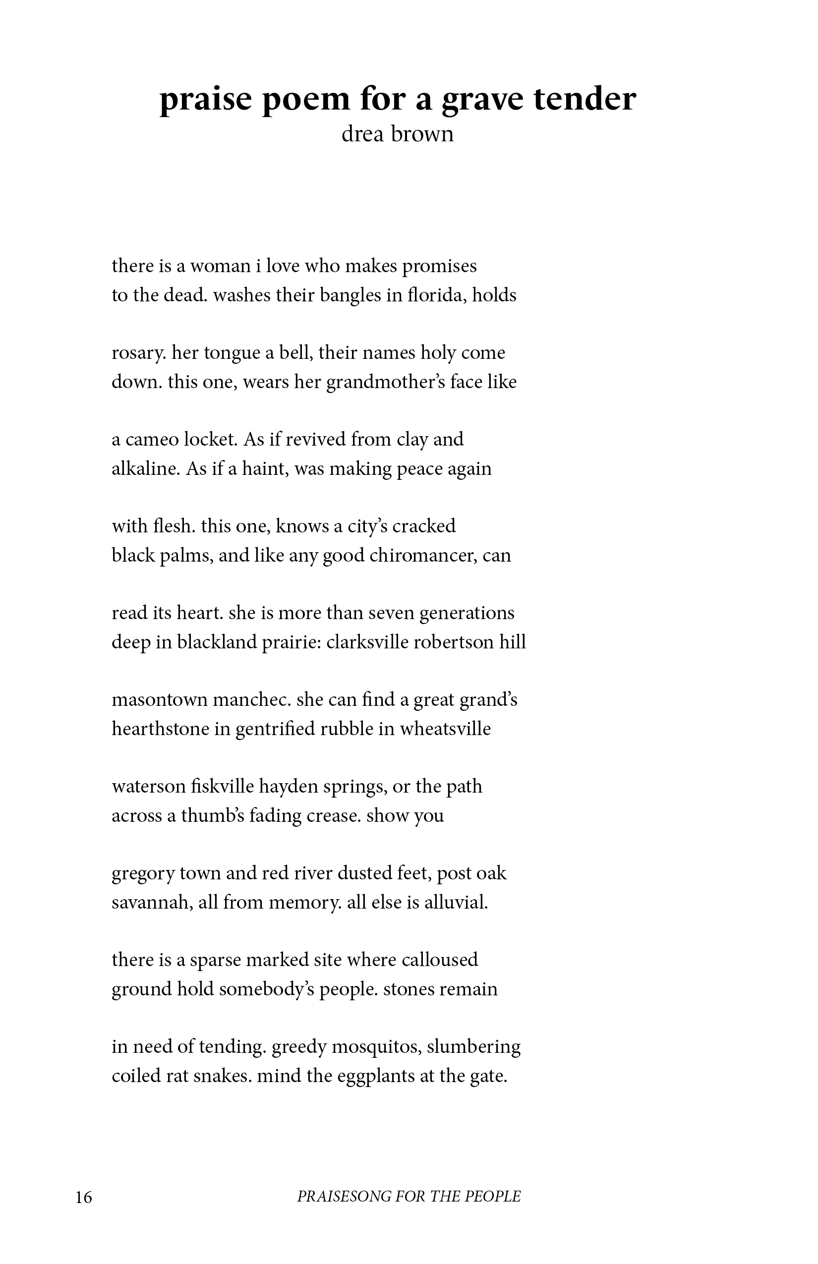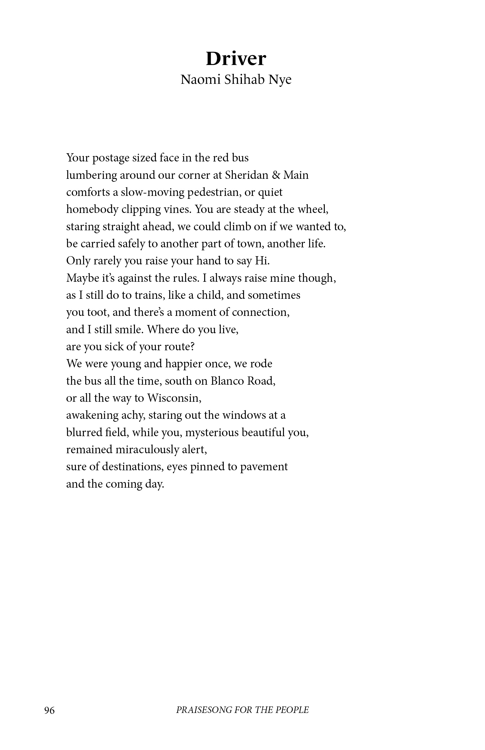 Praise the bus driver who ferries us safely across town. Praise the abuela who dries our tears. Praise the librarian who protects young curiosity. Praise the therapist with an open door, the teacher fluent in the language of affirmation. With story, testimony, and song, these poets give our unsung community heroes their flowers.