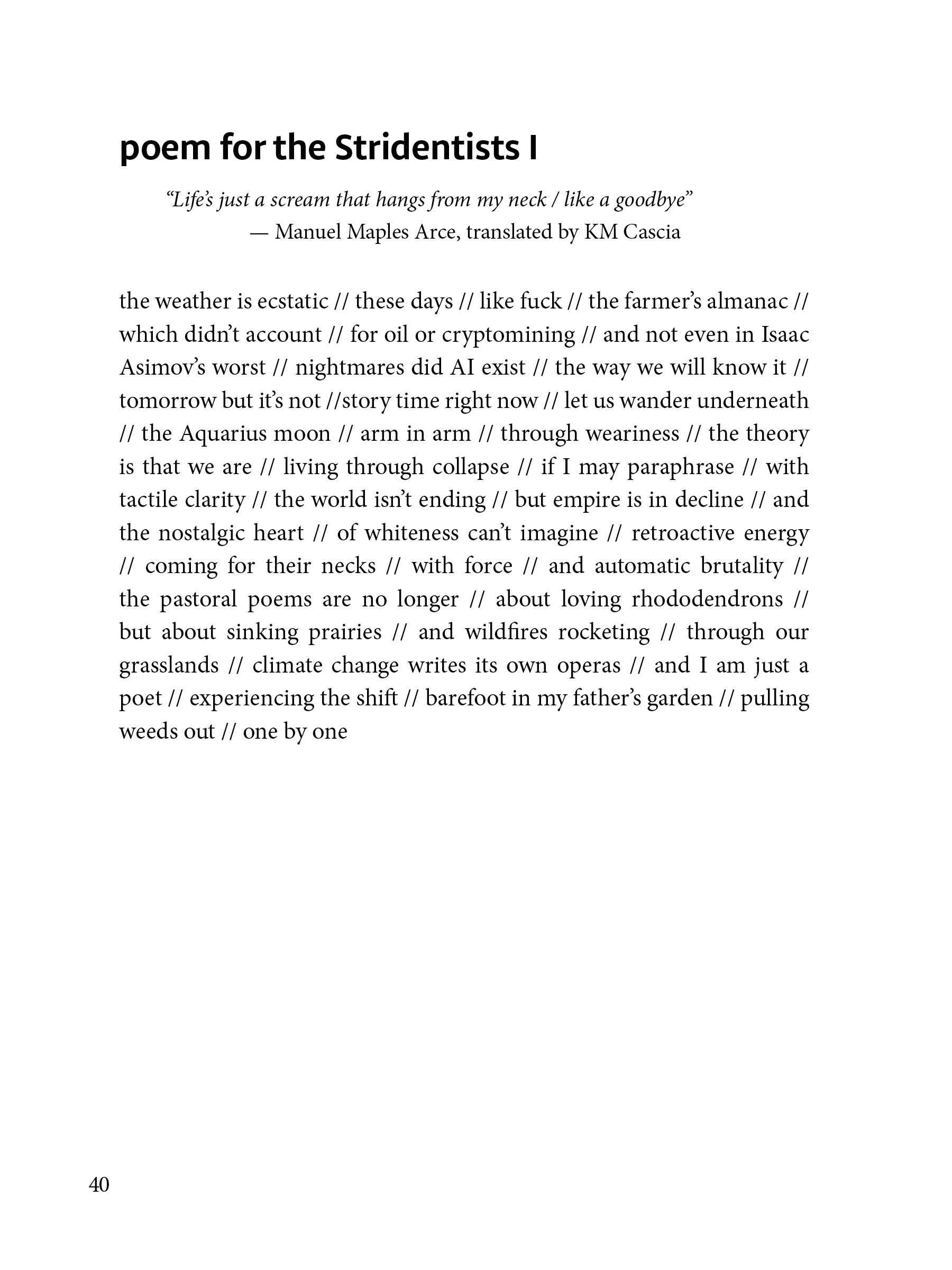 In fragmented lyric and explosive song, mónica teresa ortiz’s poems explore catastrophe, illustrating in verse the refusal of the human spirit to submit to systems of oppression, and its undying cry for liberation. Because these are love poems, too. Singing for their beloveds, for hope, for deliverance. Singing for the afterlife, which ortiz envisions as a queer futurity in which “Nothing matters more than halting the brutal mechanizations of colonialism."