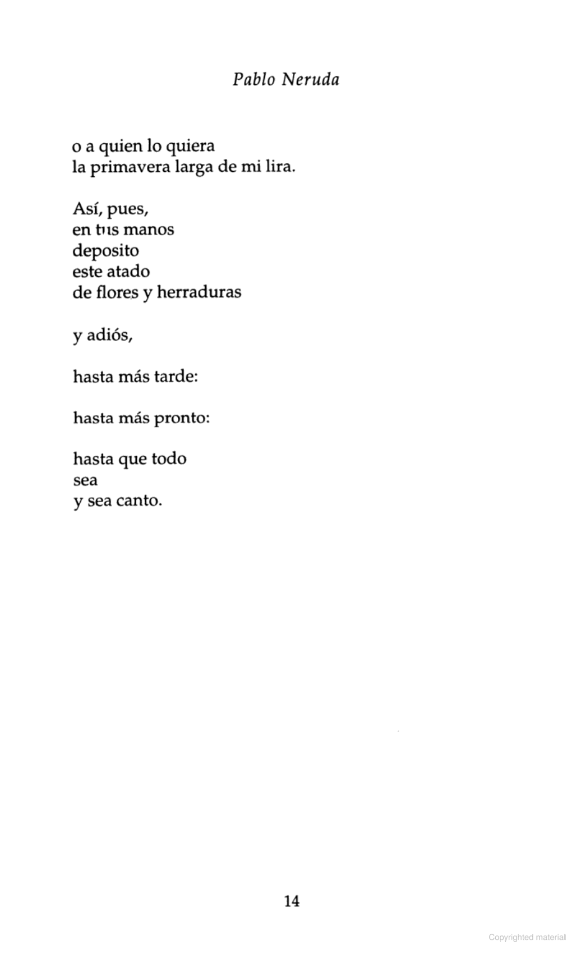 These translations have the same fizziness, the same physical excitement that Pablo Neruda has.