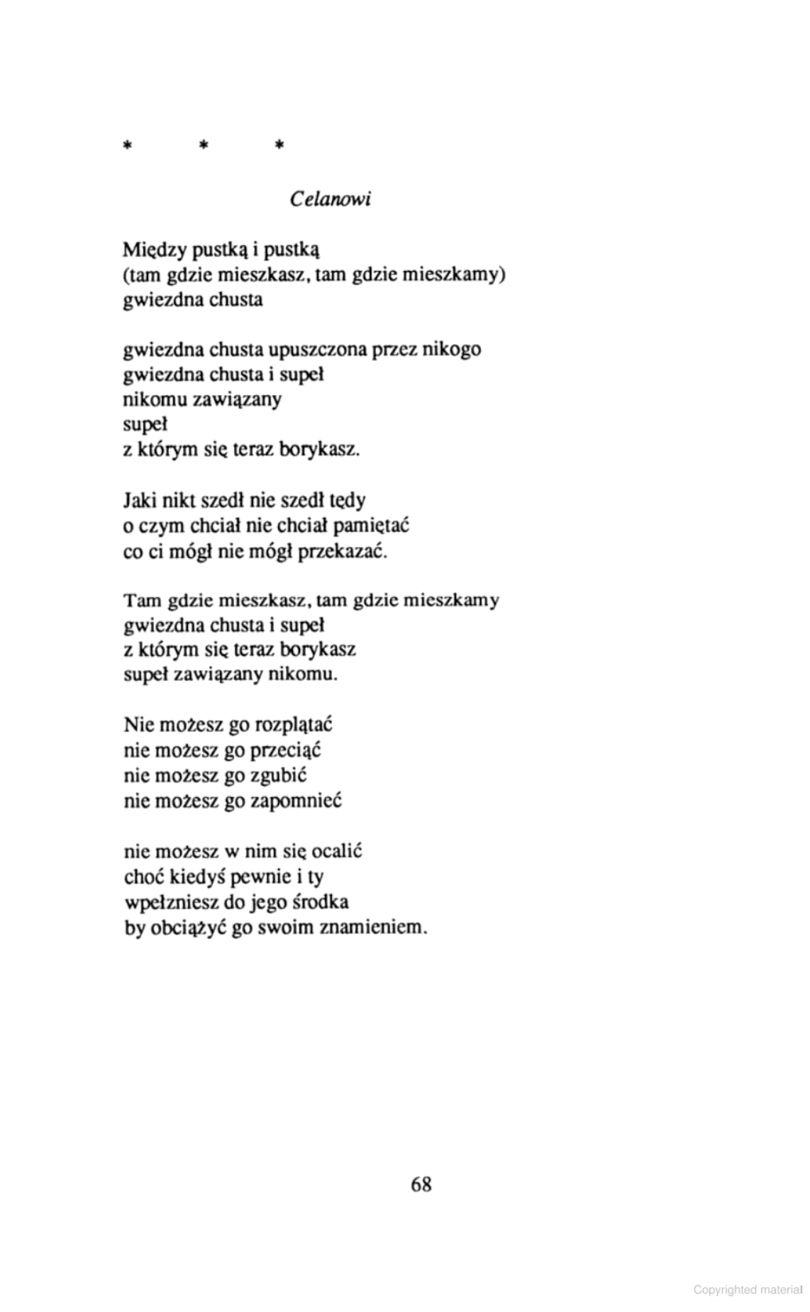 Using words, expressions, images and sounds from a variety of sources; popular magic, songs heard in her childhood, the music of Bach, everyday conversations and works of great philosophers, Uszula Kozioł established herself as one of the most important voices in Polish poetry. In an idiom similar to Paul Celan, Kozioł takes the reader into diverse and unique topics from the world of a snowflake to the life of Circe. She is a poet with the fine sensibility of our time who has embarked on the quest for the knowledge of reality, and comments on all aspects of that reality, including the precariousness of life, relationships and humankind's survival with intensity and intelligence. A bilingual collection every serious student of 20th century poetry should have on their shelf.