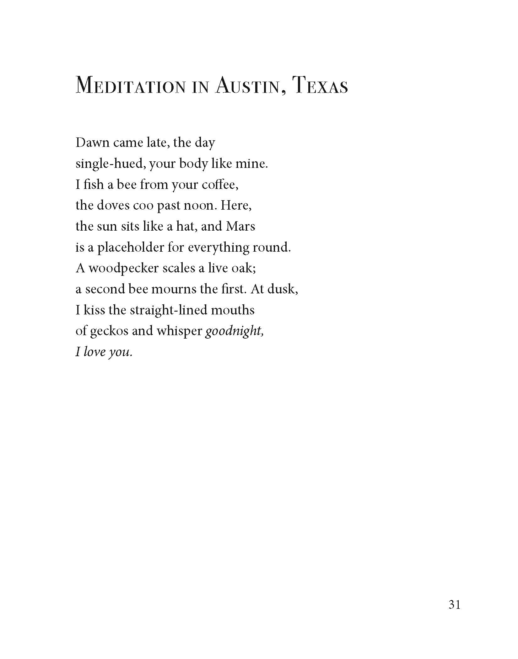"Meditation in Austin, Texas" from Sixteen Rabbits: