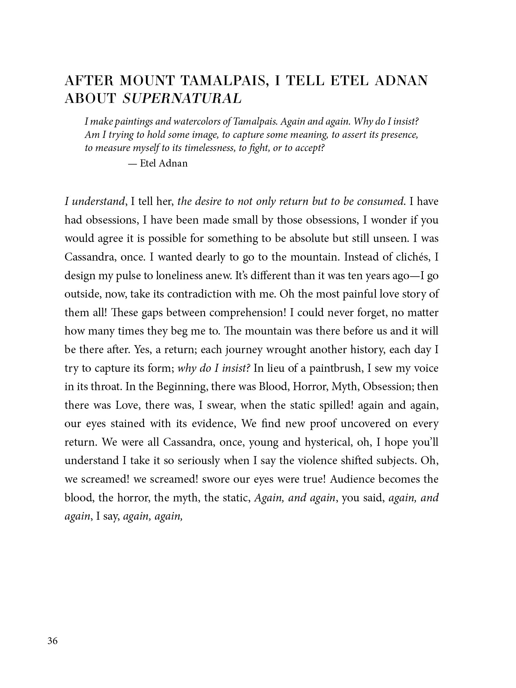 ✦ Poem-A-Day, “AFTER MOUNT TAMALPAIS, I TELL ETEL ADNAN ABOUT SUPERNATURAL”