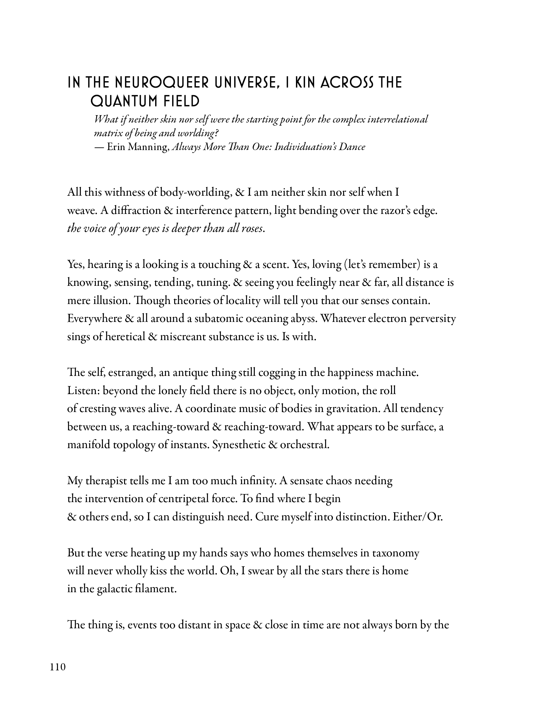 heidi andrea restrepo rhodes offers poems as portals into a “wilderness of intimacies” where the crip marvelous, the sacred profane, and trans love emerge in an ecstatic throng. With a poetics that resists taxonomy, many voices surge through this collection. They speak us new names, and urge us toward vibrant becomings.